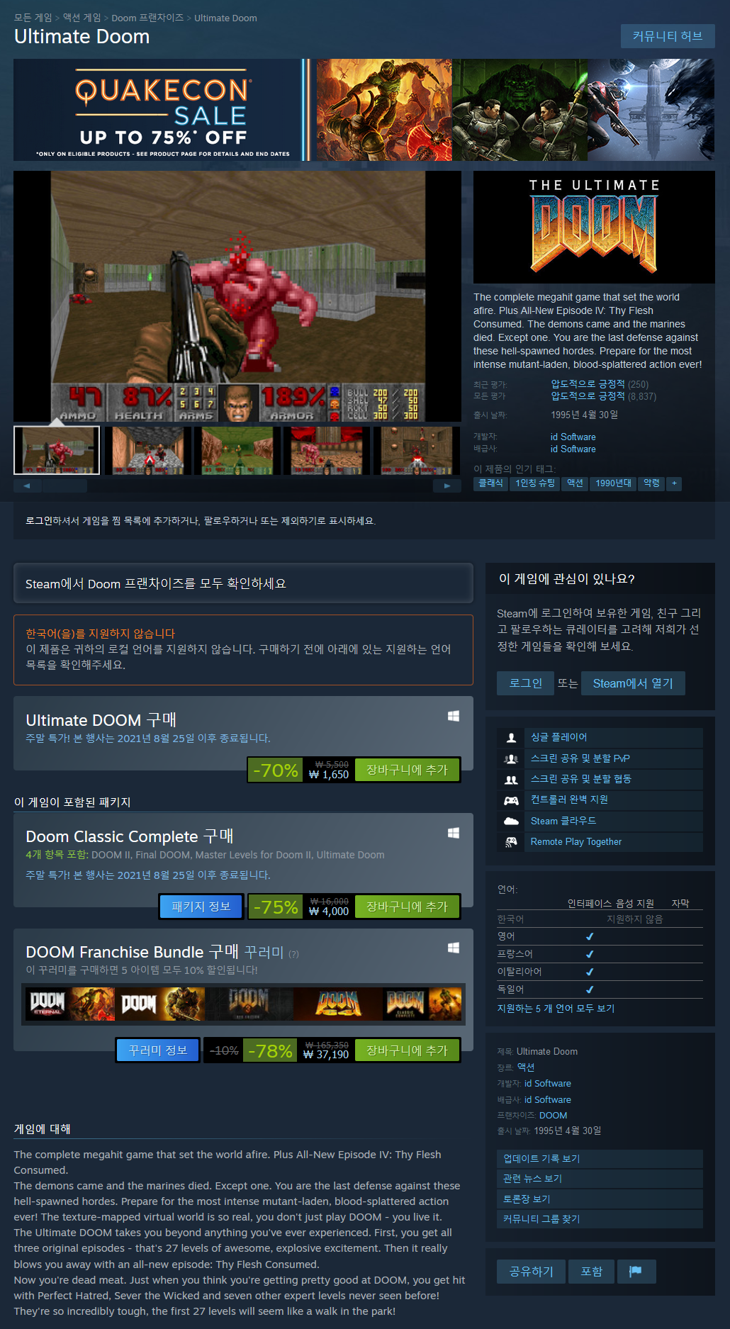| 둠 2: 헬 온 어스, DOOM II 소개(Introduce),리뷰(Review),할인(Sale) 관련 (0) | 2021.08.16 |