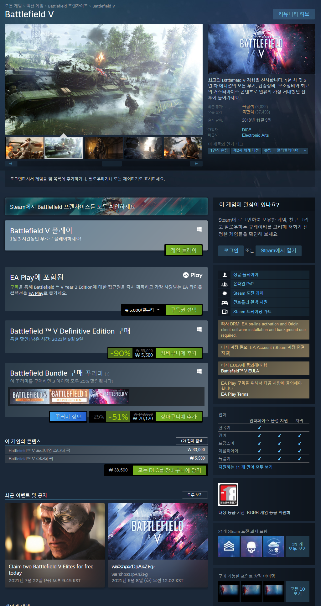 최고의 Battlefield V 경험을 선사합니다. 처음부터 해제되는 모든 게임플레이 콘텐츠로 지상, 공중, 해상을 아우르는 인류의 가장 거대했던 전투에 들어가세요. 모든 무기, 탑승장비, 보조장비에서 선택하고 제2차 세계 대전의 악전고투 속으로 빠져보세요. 1년 차 및 2년 차 에디션의 모든 정예병과 최고의 커스터마이즈 콘텐츠로 전장에서 돋보이는 존재가 되세요.