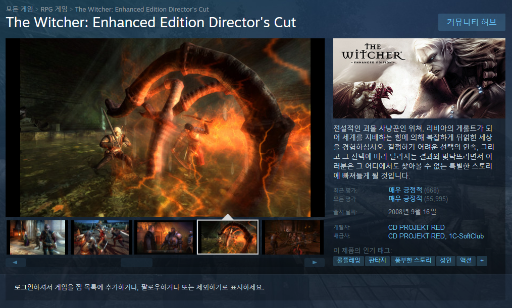 3.더 위쳐1 인핸스드 에디션이 깔린 폴더를 찾아 그안에 붙여넣기 합니다.
